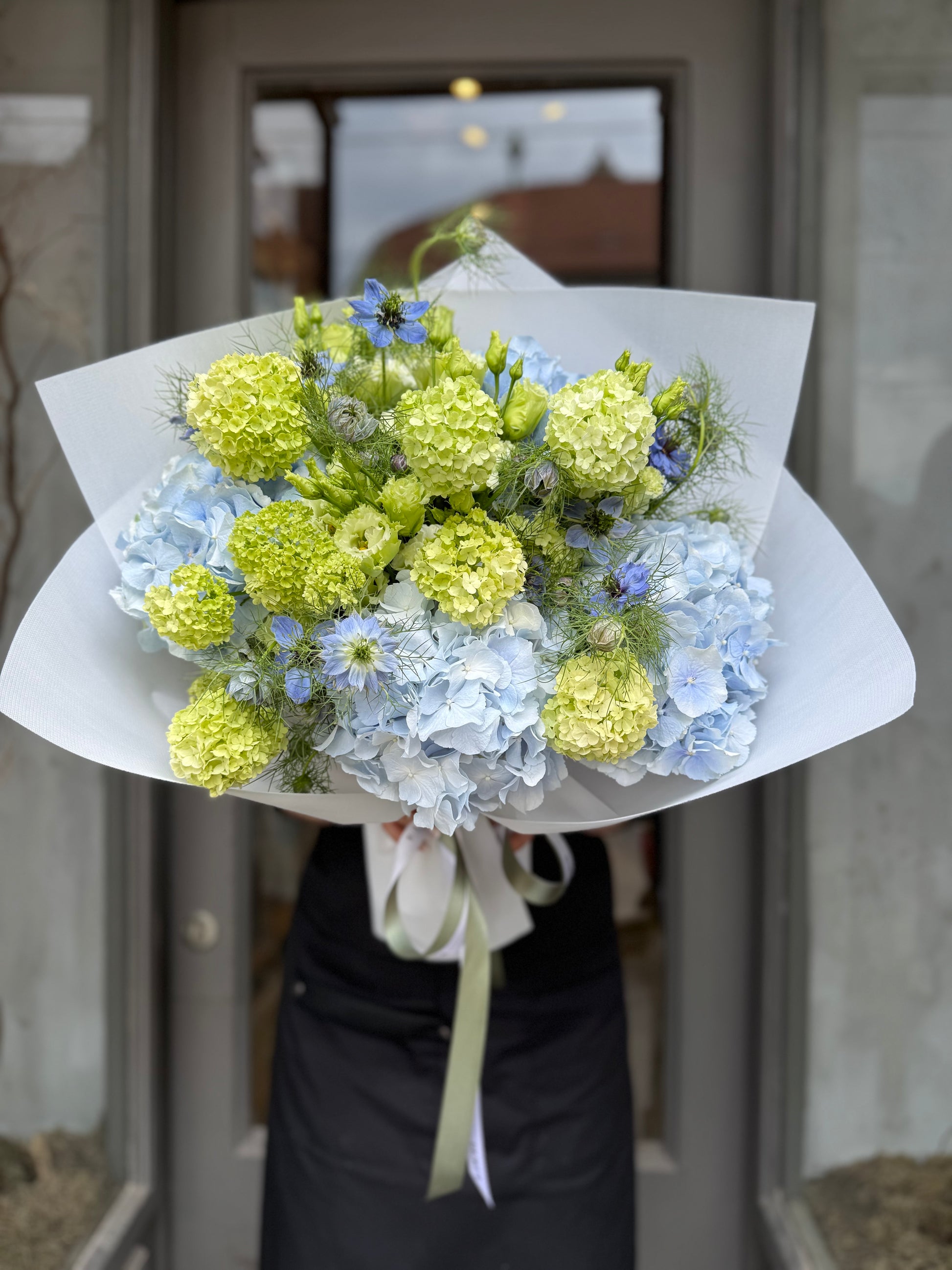 Hydrangea, viburnum, delphinium, lisianthus